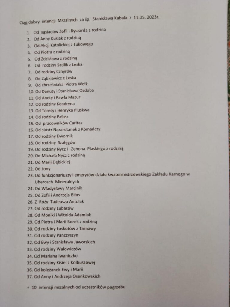 17.00 + Stanisław MOLEK w 1 roczn. śm. int. od żony Krystyny z dziećmi